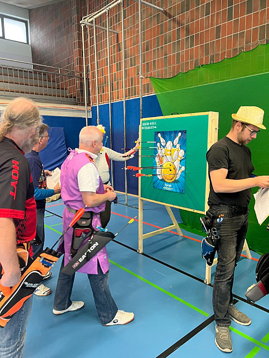 Doch nicht nur optisch hatte das Turnier einiges zu bieten – auch der Modus sorgte für närrische Spannung. Jede geschossene Zahl auf den kunterbunten Scheiben wurde im Hintergrund mit einem geheimen Multiplikator zwischen +30 und -30 (in Fünferschritten) versehen. So ergaben sich nach der Auswertung Punktestände zwischen 330 und -85 Zählern – eine echte Überraschung für alle Beteiligten.