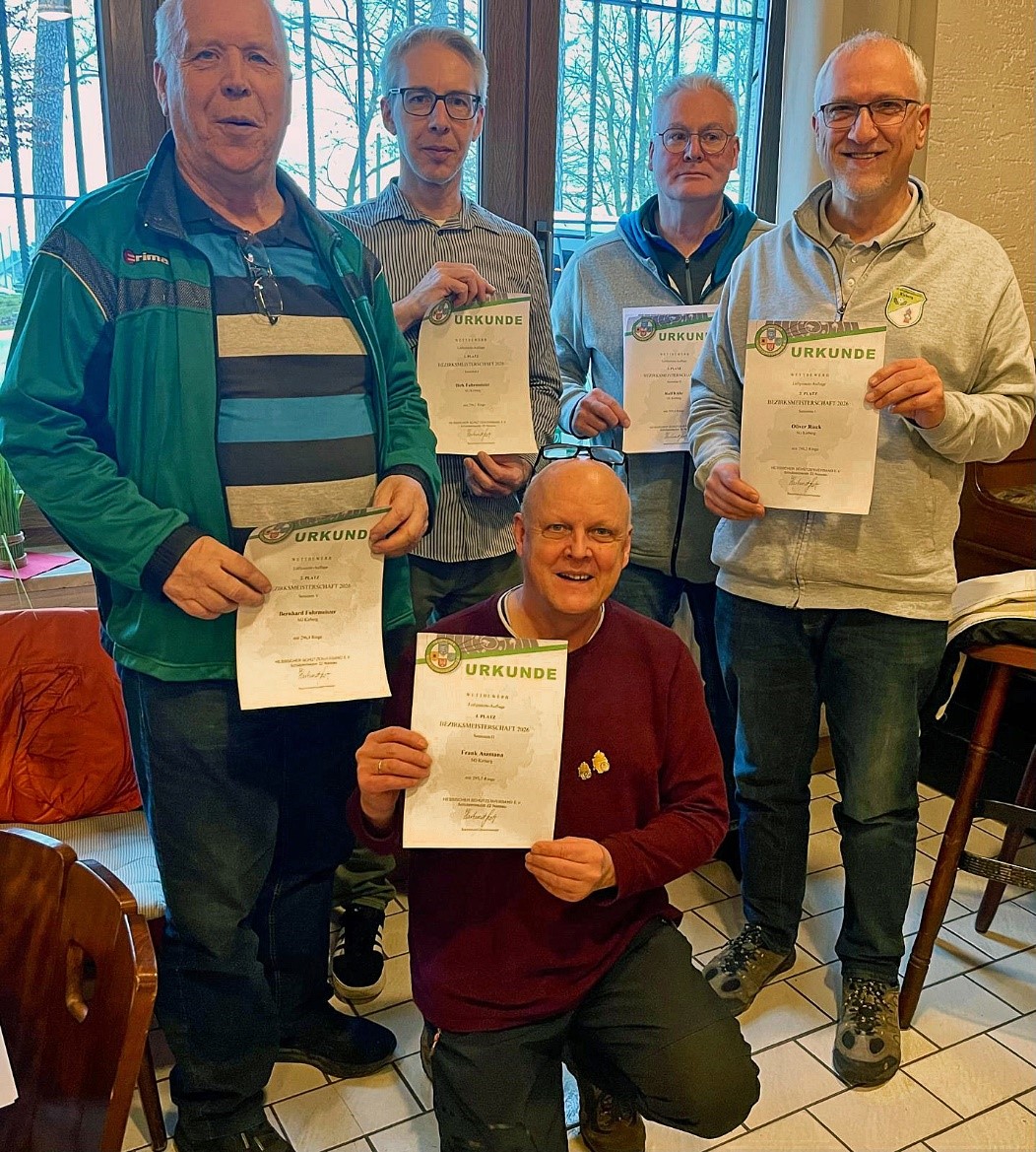 Luftpistole Auflage: Senioren II: 6. Frank Aszmann; 11. Adolf Mohr; 16. Jürgen Fritsch; 19. Ralf Kühr; Mannschaft: 6. Frank Aszmann, Jürgen Fritsch, Ralf Kühr;